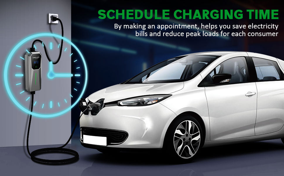 【Adjustable Current & Scheduled Charging】10 16 24 32A adjustable current. The current can be set manually, according to your needs to arrange charging.By making an appointment, our product help you save electricity bills and reduce peak loads for each consumer.