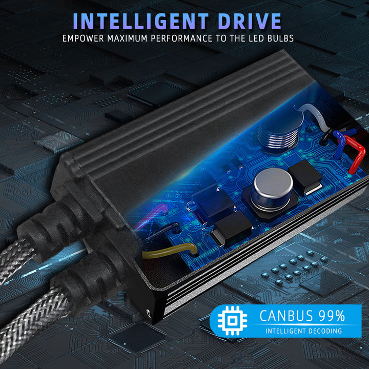 99% CANBUS READY & INTELLIGENT DRIVER: Equipped with an external intelligent driver box, these bulbs feature advanced decoding capabilities. They are compatible with 99% of vehicle systems, solving common issues such as dashboard error codes, flickering, or radio interference. The external driver also separates the power supply from the bulb body, further aiding in heat management.