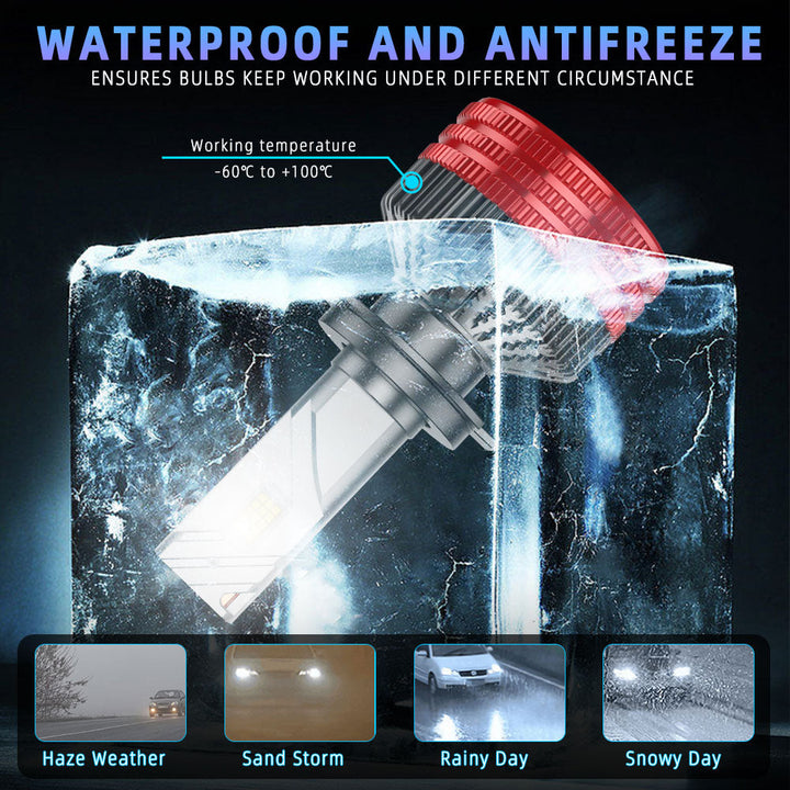 IP68 WATERPROOF & ALL-WEATHER DURABILITY: Designed to withstand extreme conditions, these bulbs operate perfectly in temperatures ranging from -60°C to +100°C. Whether facing heavy rain, snow, sandstorms, or haze, the waterproof and antifreeze construction ensures reliable illumination. The compact design allows for an easy, non-destructive "plug and play" installation in minutes.